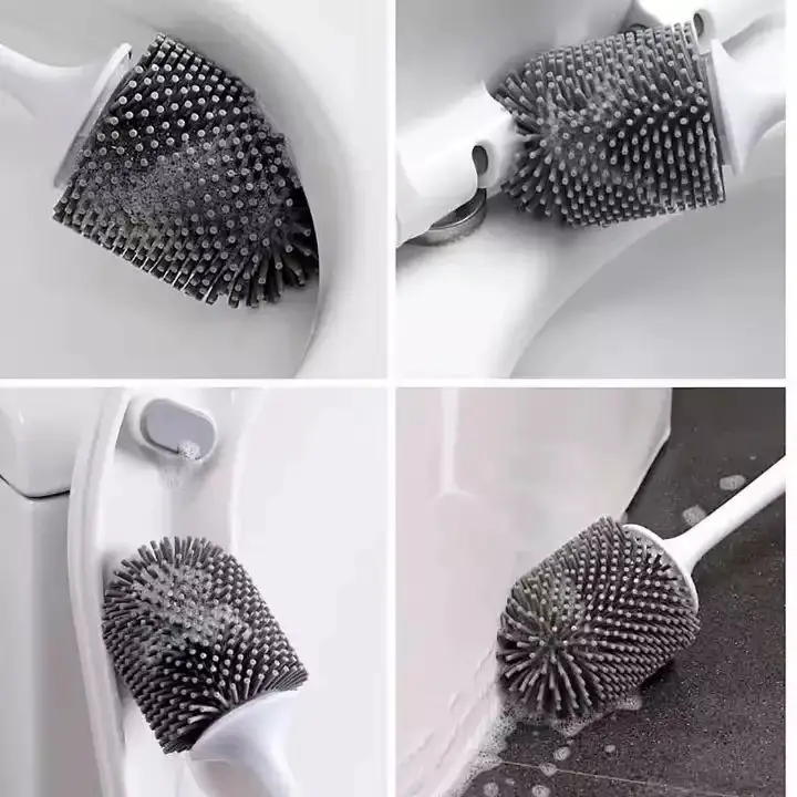 Automatic Opening Closing Toilet Cleaning Brush Silicone Toilet Brush and Holder Drainable Wall-mounted TPR Toilet Brush