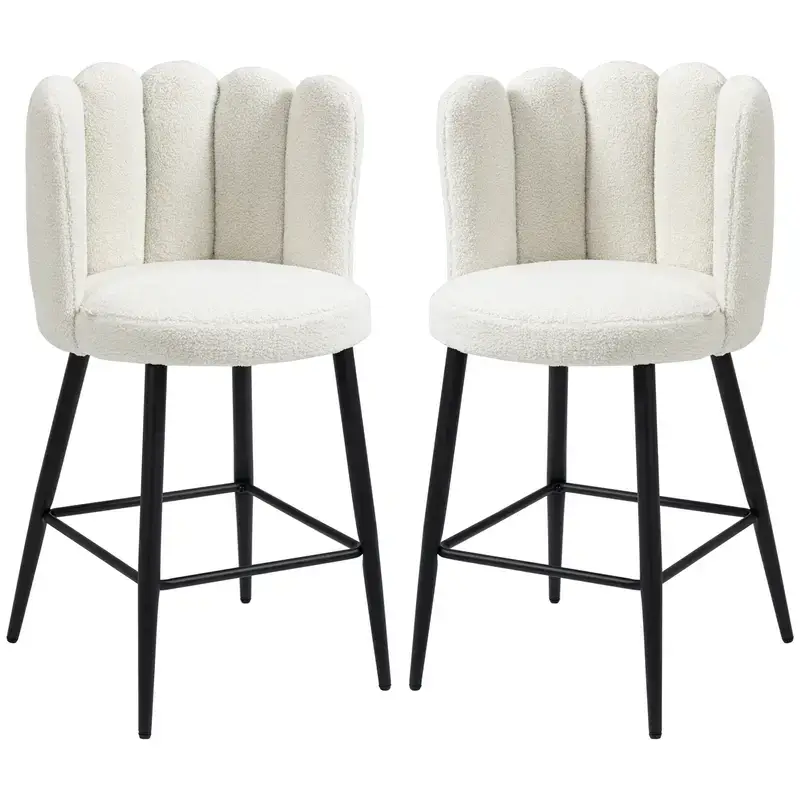 Bar Stools Set of 2, Faux Cashmere Upholstered Breakfast Bar Chairs, Modern Kitchen Stools with Backs, Footrest and Steel Base, Cream