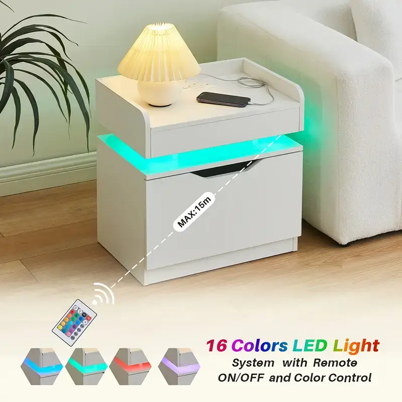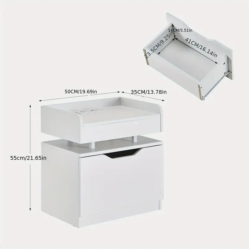 Modern White Bedside Table with Storage Drawer & Shelf – Scratch-Resistant, Faux Wood Finish for Bedroom and Living Room, CLIPOP