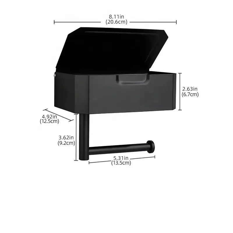 Bathroom Modern Style Metal Stainless Steel Black Phone Shelf Lid Storage Box Toilet Paper Holder With Storage