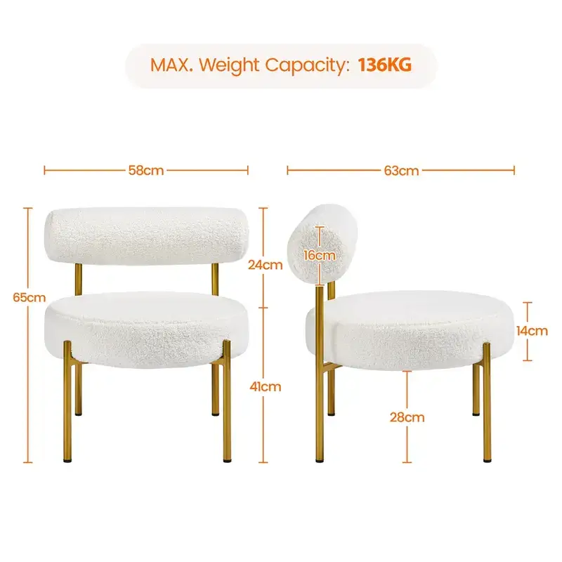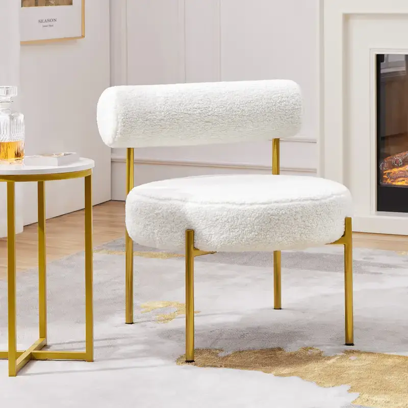 Boucle Accent Chair Side Chair with Round Padded Seat and Gold Metal Legs for Living Room Bedroom Lounge
