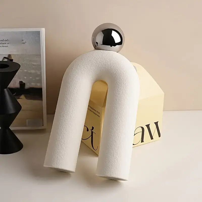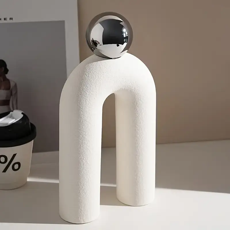 Ceramic Arch Sculpture with Electroplated Silver Sphere – Versatile Indoor Decorative Ornament for Living Room, Bedroom, New Home, Christmas, New Year Gifts – No Electricity Required