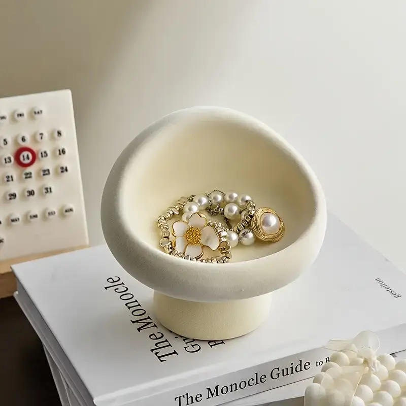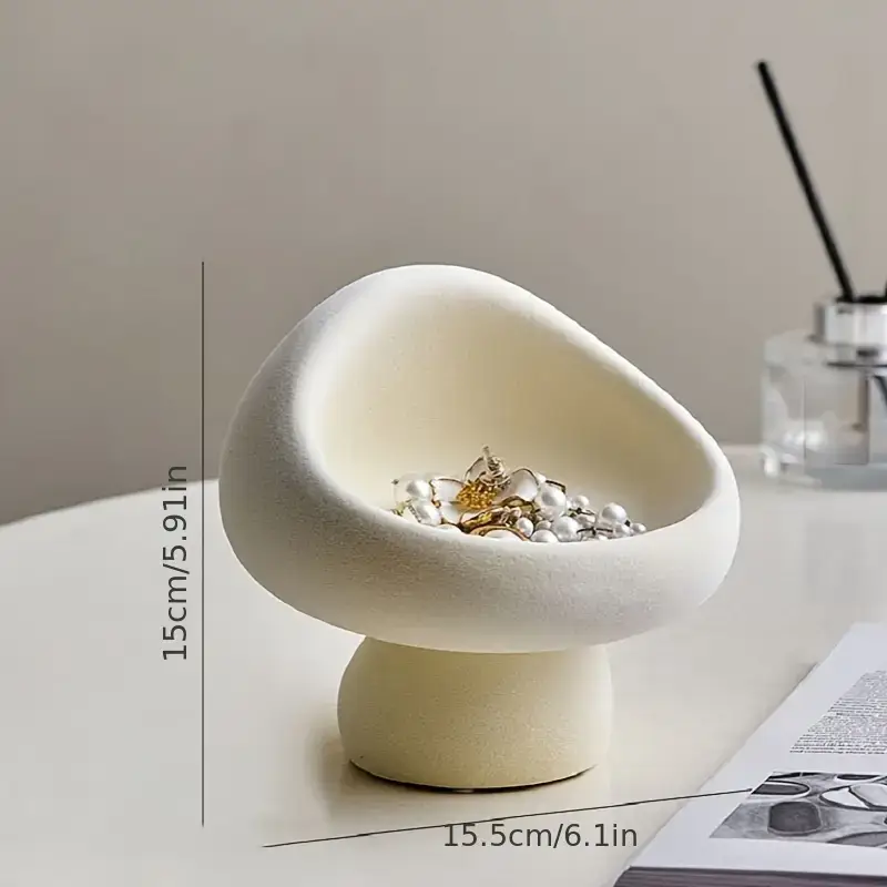 1pc Ceramic Mushroom Jewelry and Key Holder – Elegant Flocked Design for Living Room, Desk, Bedroom Vanity, Entryway Décor – Indoor/Outdoor Use, Holiday Themes (Christmas, Halloween, Easter, Thanksgiving), Jewelry Organizer | Decorative Organizer | Decorative Ceramic, Mushroom Décor