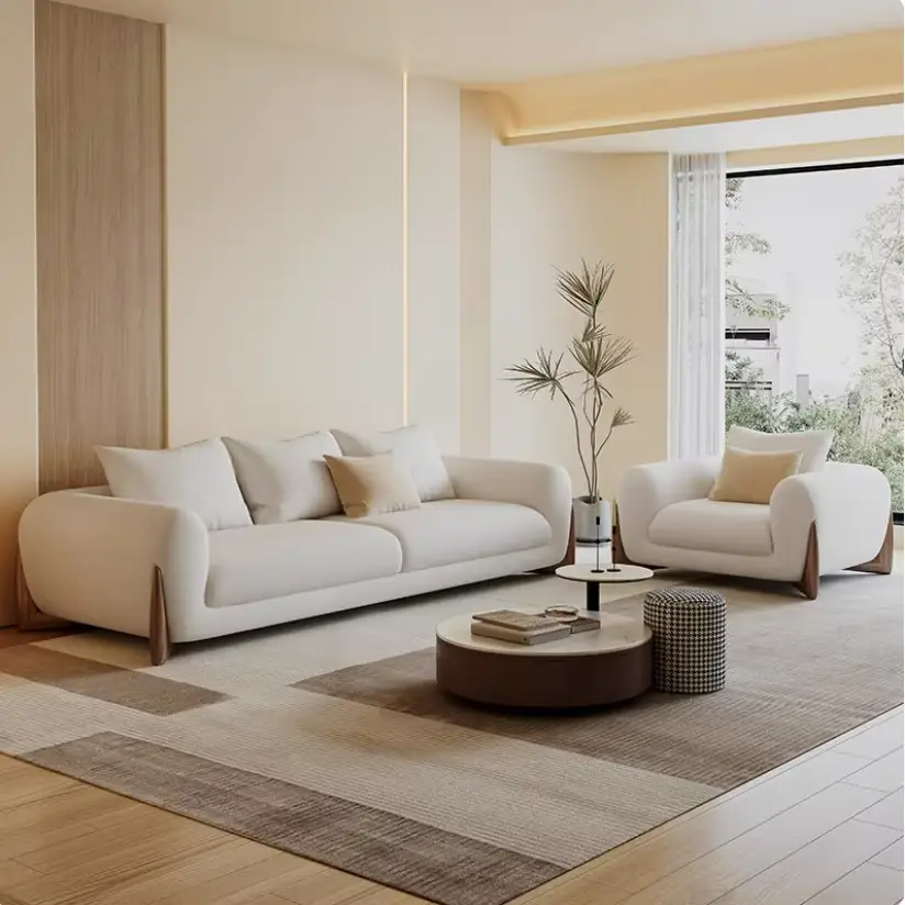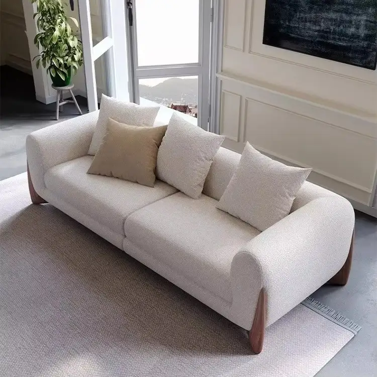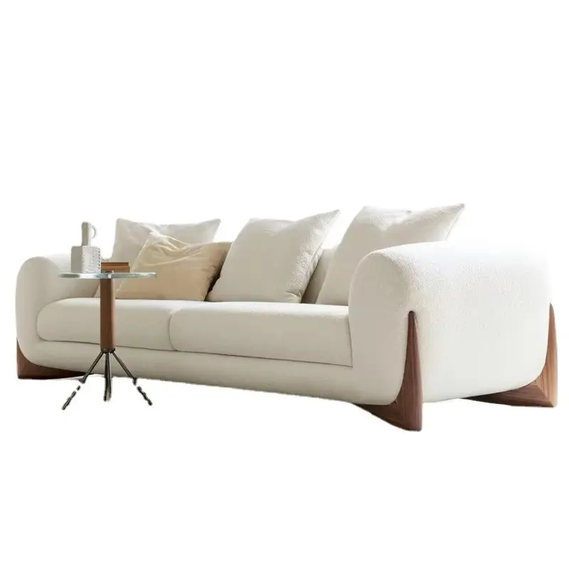 Simple Modern Cream Lamb Wool Sofa Set Luxurious Tufted Fabric Straight Row for Living Room or Small Apartment