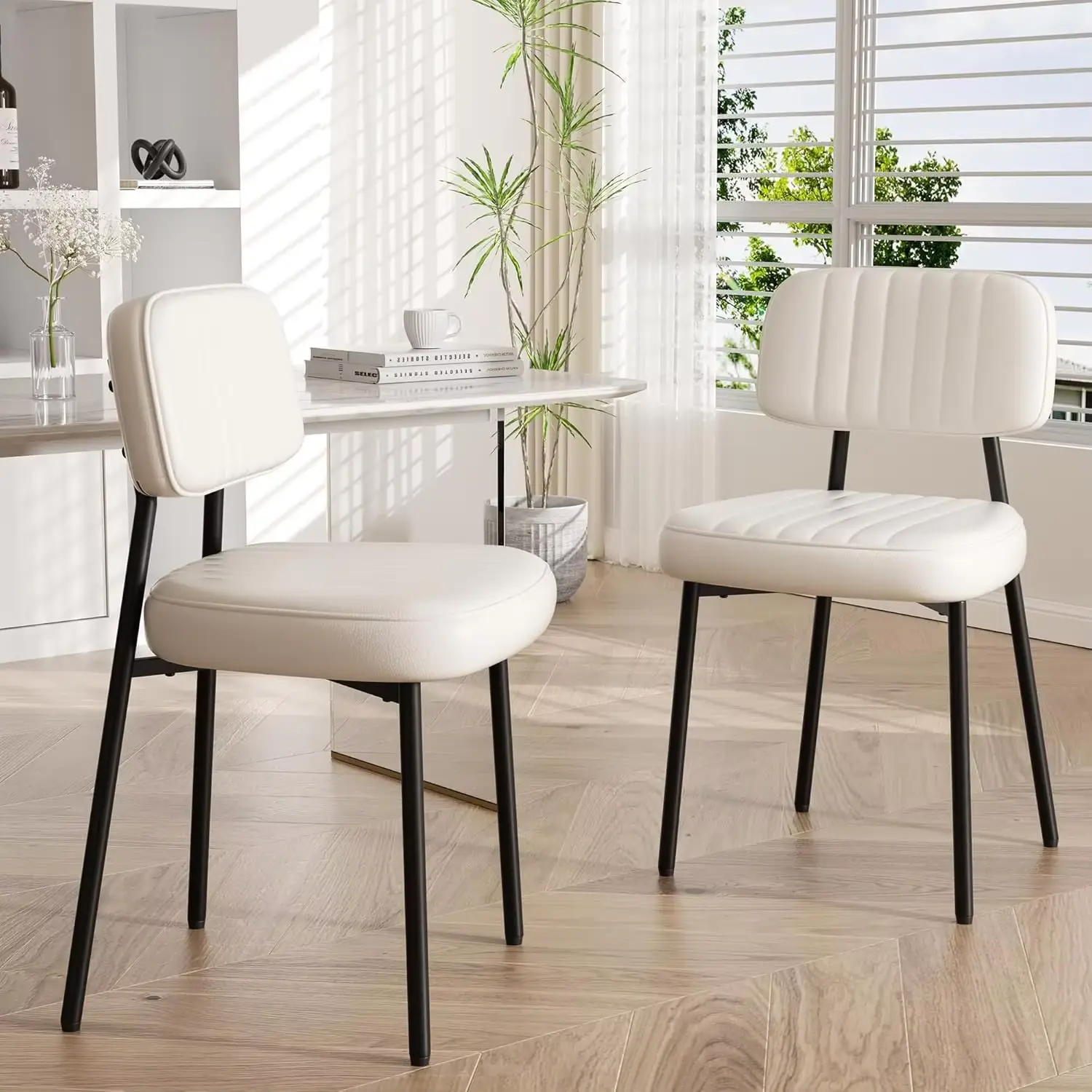 Modern Dining Chairs with Thick Cushions Seat Back Comfy Upholstered Dining Chairs for Kittening Living Room