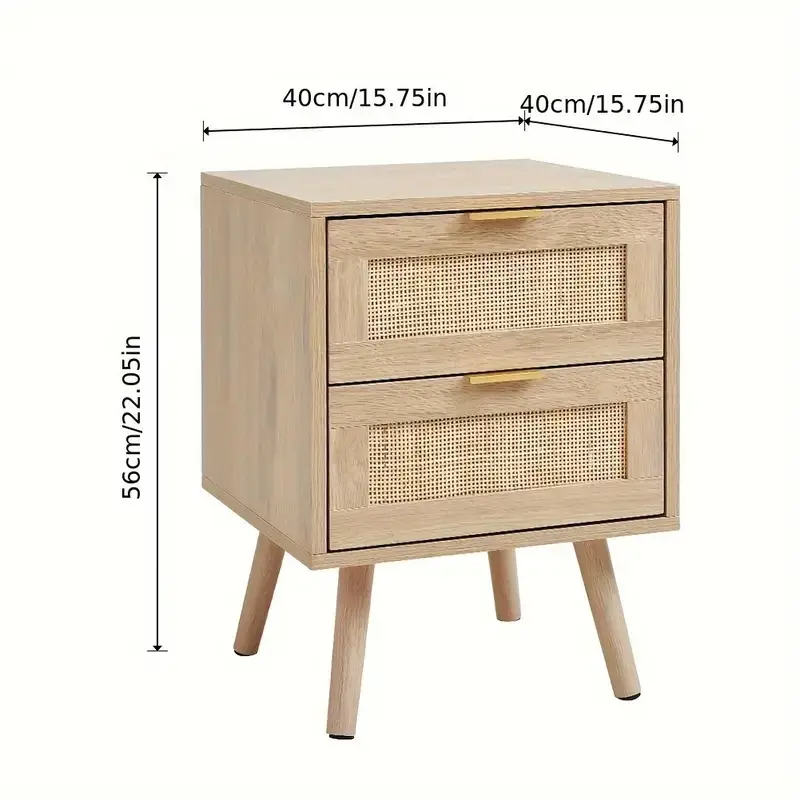 2pcs 2 Drawer Rattan Bedside Table Cabinet Nightstand Cabinet Bedroom Furniture