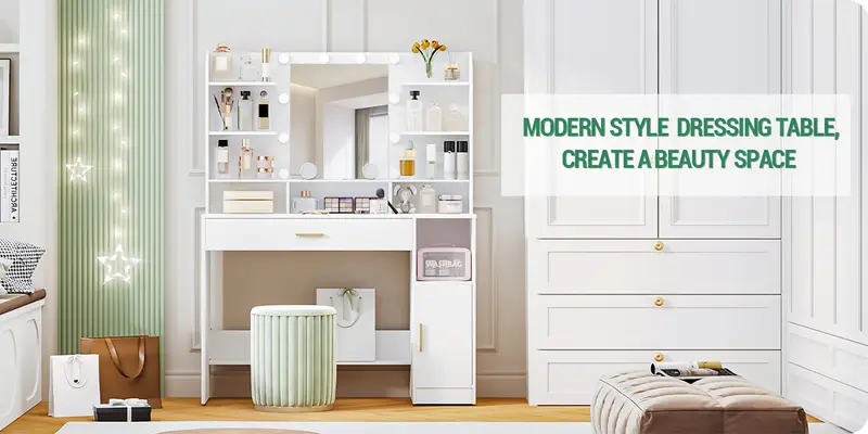Dressing Table, Large Table Top with Mirror, with Drawers And Storage Cabinets, Open Shelves, for Bedroom, Wardrobe, White, Storage Of Jewelry And Accessories, Jewelry Storage Cabinet, Jewelry Armoires