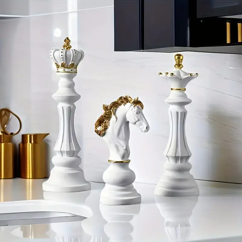 3pcs Elegant Resin Chess Statue Decor – Intricately Crafted Black & White Pieces, Aesthetic Window Display, Durable Home Accent for Room & Desk Decor – Perfect Gift Idea