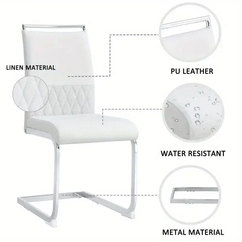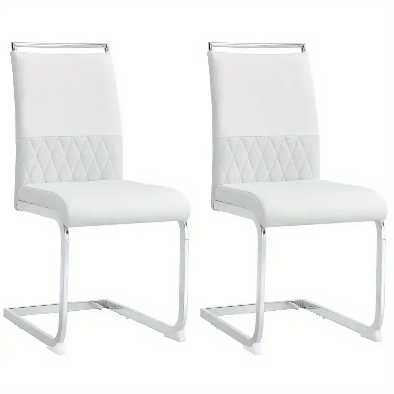 Modern Dining Chairs Set of 2 Backrest Made of PU Faux Leather And Linen High Back Padded Side Chair Horizontal Stripes Backrest Design for Dining Room Kitchen Guest Office Chair White