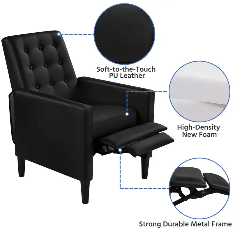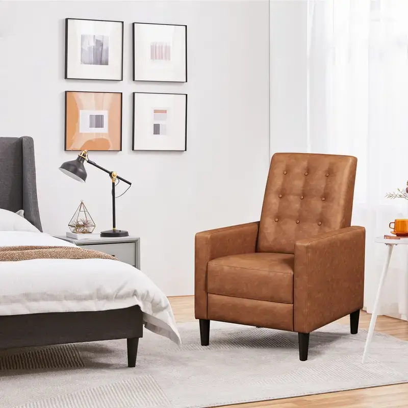 Faux Leather Recliner Sofa Modern Single Reclining Chair Tufted Upholstered Sofa with Adjustable Back/Footrest/Pocket Spring for Living Room/Office/Bedroom/Home/Theater, Brown/Black
