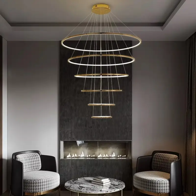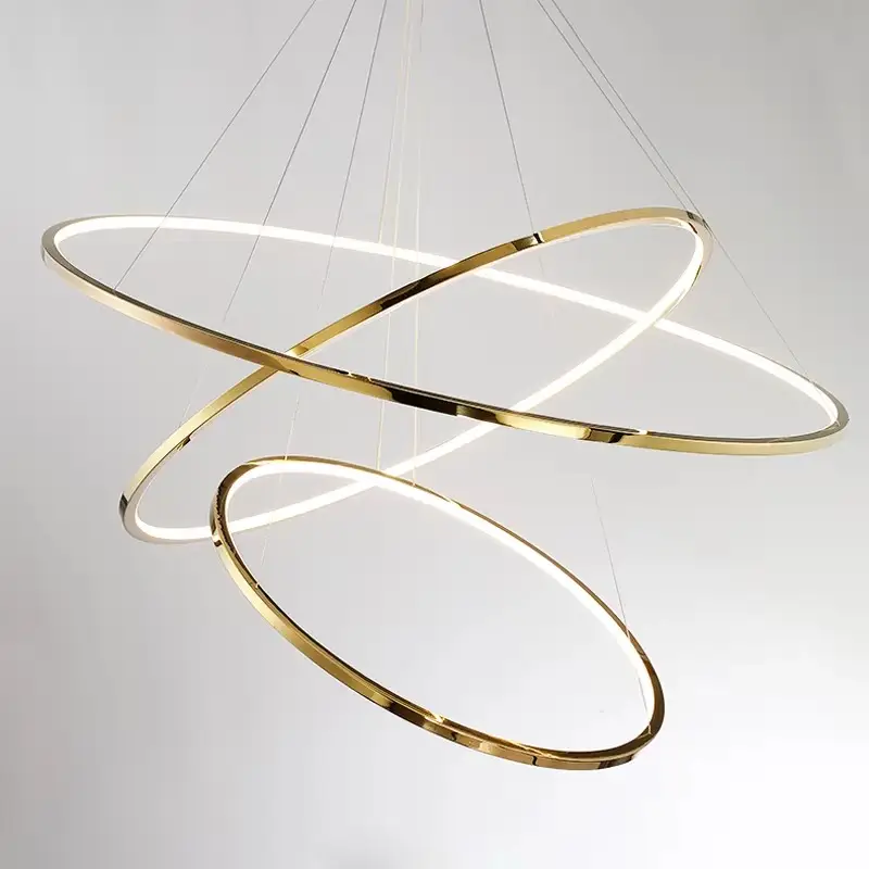 Rings Design Round Stainless Steel Pendant Light Nordic Modern Gold Luxury Led Chandelier for Living Room Staircase