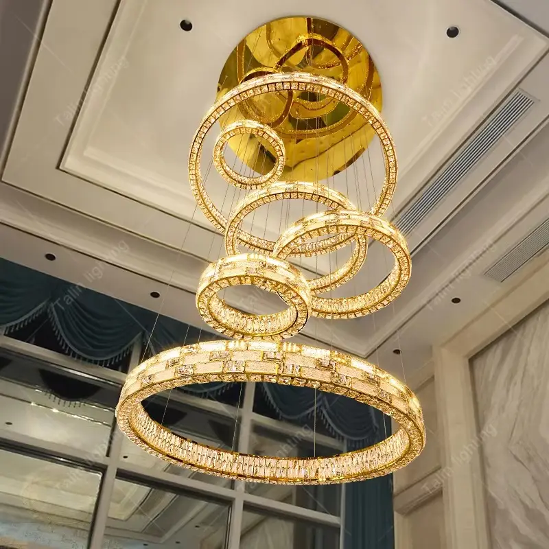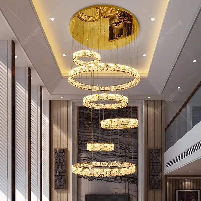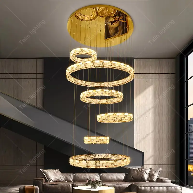 Modern Gold Ring Crystal Staircase Chandelier Large Luxury Ring Villa Chandelier Ring Crystal Hotel Lobby Long Stairs Chandelier