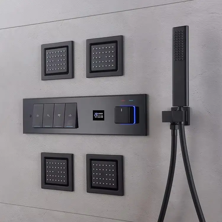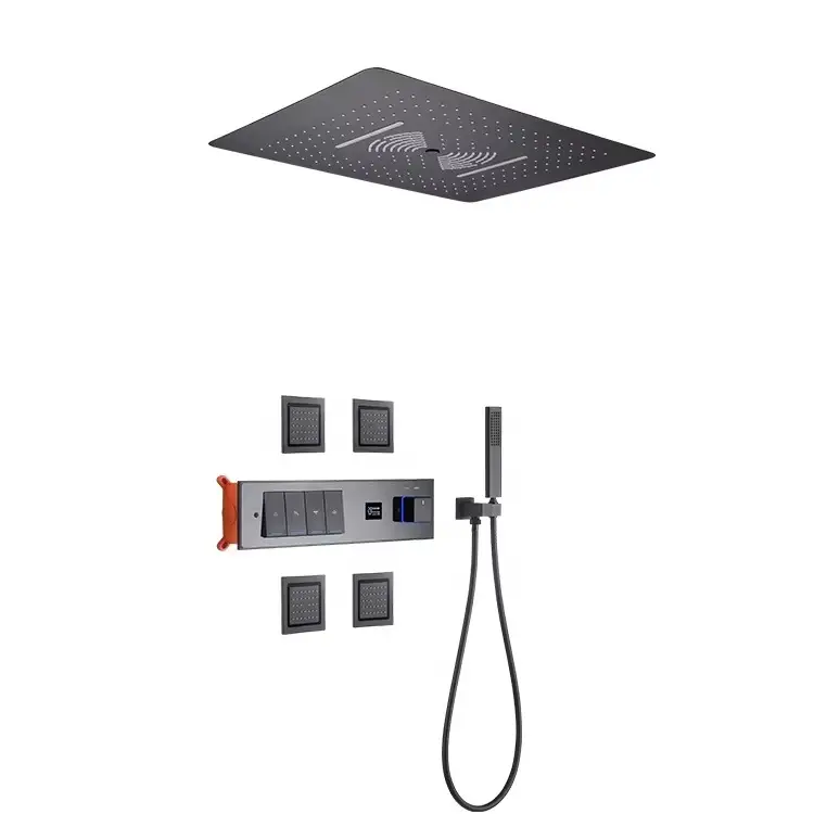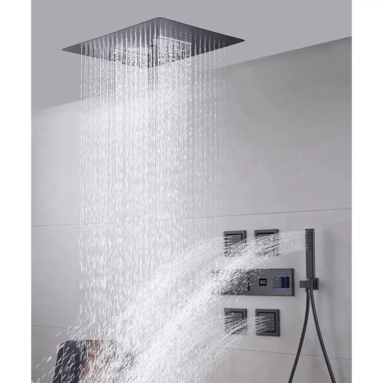 Luxurious In-wall Bathroom Ceiling Waterfall Rain Concealed Shower System Embedded Thermostatic Mixer Faucet Set Jet Massage