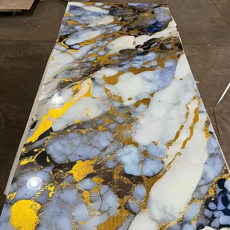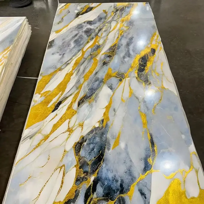 Modern Light Luxury Gold Foil Film Bamboo Charcoal Wood Veneer Decorative Wall Panel Bamboo Charcoal Wood Veneer Pet Marble