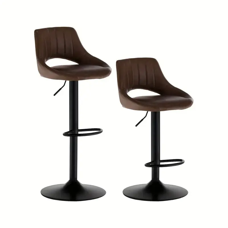 2pcs Luxury Bar Stool, Round Wooden & Metal Frame Tall Stool with Stackable Design & Footrest, Heavy Duty Iron for Home Bar, Study, Kitchen, Cafe, 32x32x65cm, Wood + White