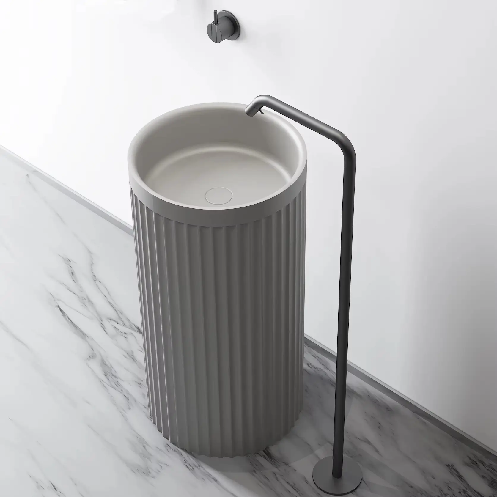 Modern Design Solid Surface Wash Basin Hot Sale Freestanding Round Pedestal Solid Surface Sink Resin Stone Shampoo Sink