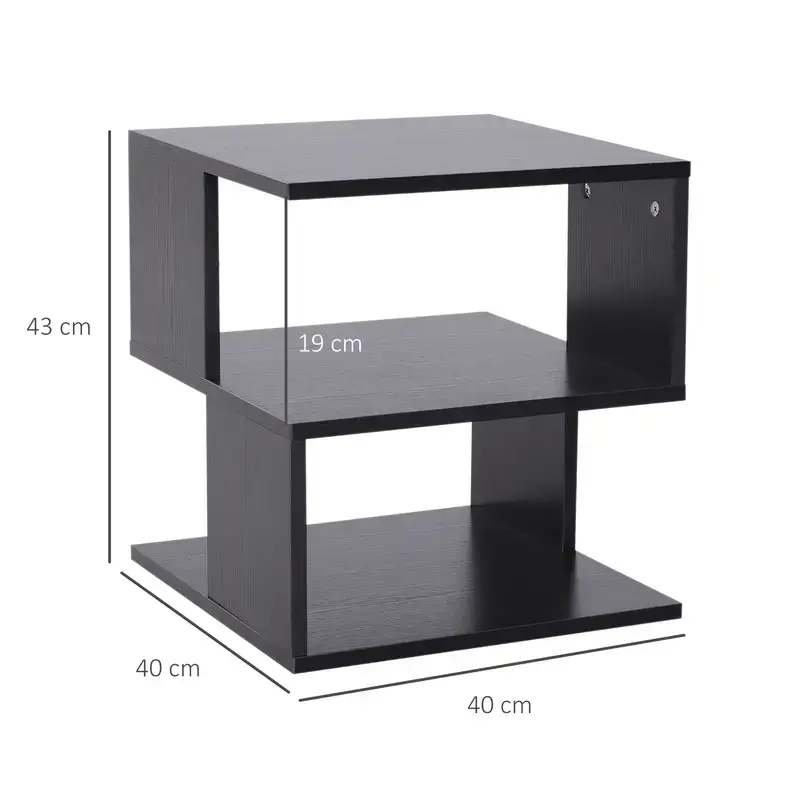 Side Table Square Coffee Table Modern End Table with 2 Tier Storage Shelves for Living Room, Bedroom