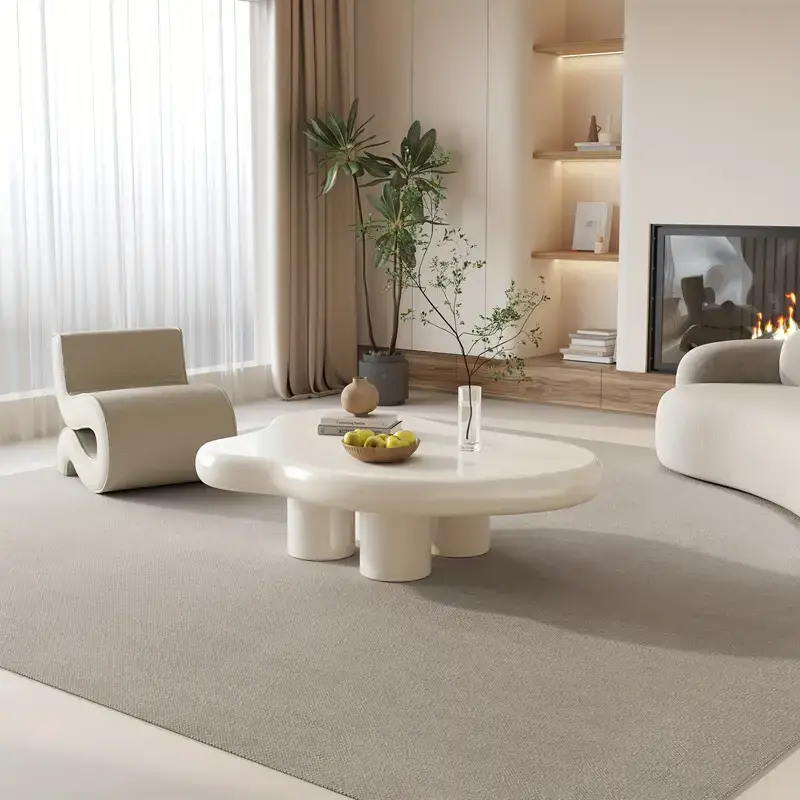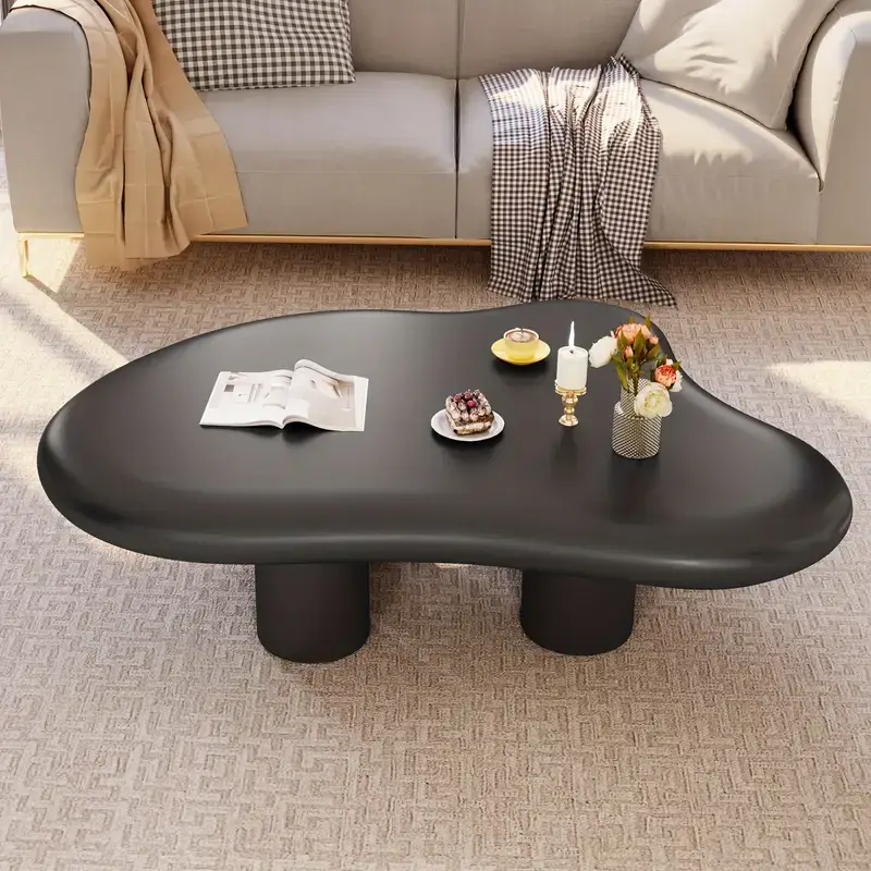 Modern Irregular Cloud-Shaped Coffee Table – Solid Hardwood Four-Legged Design, Space-Saving Easy Assembly for Living Room, Office & Small Spaces, Coffee Table for Living Room