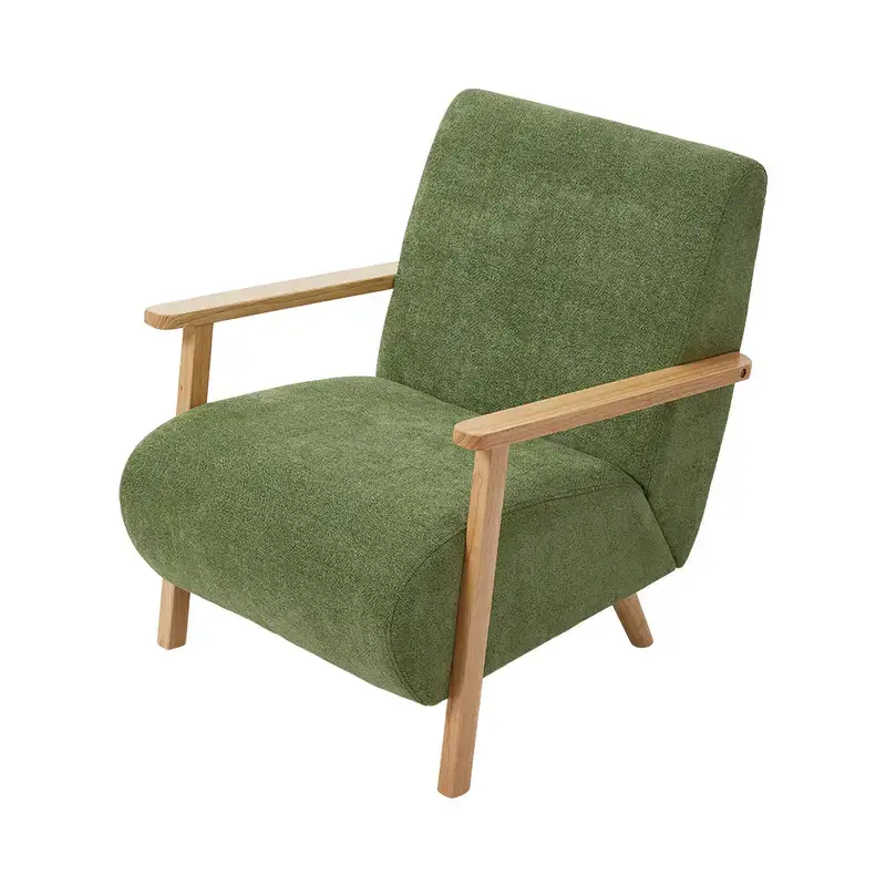 1pc European-style Modern Single Sofa Lounge Chair, Living Room Balcony Wooden Armrest Lounge Chair, Upholstered Comfortable Chenille Lounge Lazy Sofa Chair, Green, 70*67*80cm