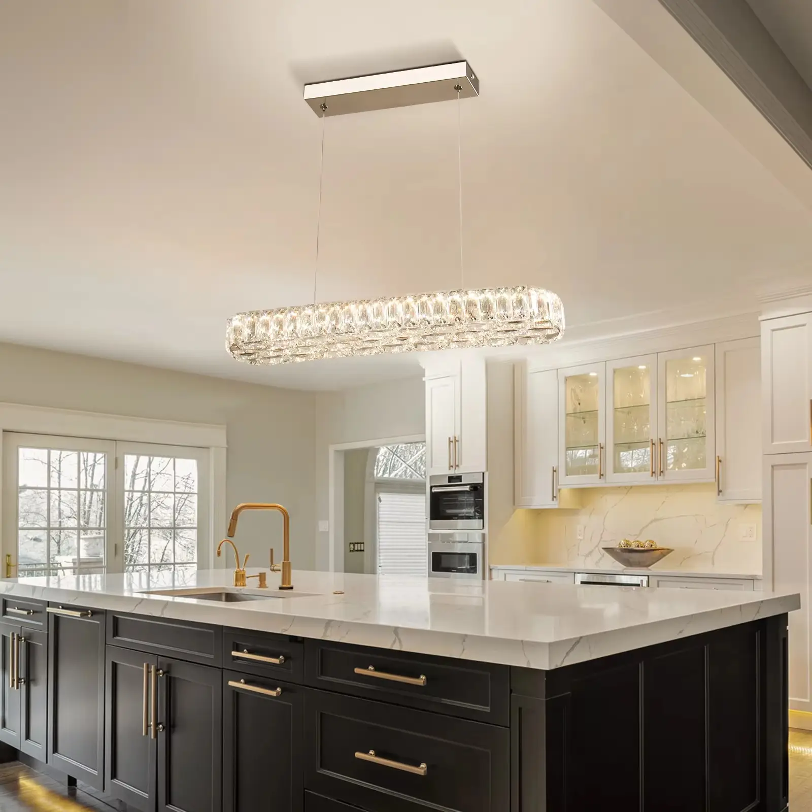 Modern Minimalist LED Pendant Light Gold &White Crystal with Stainless Steel for Indoor Restaurant & Kitchen Décor Home Office