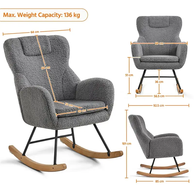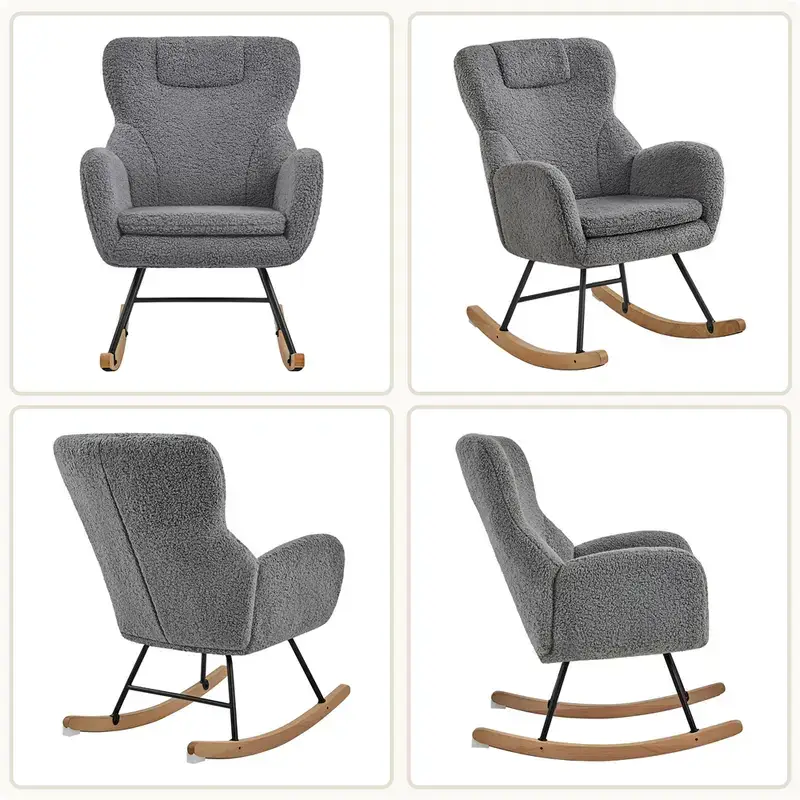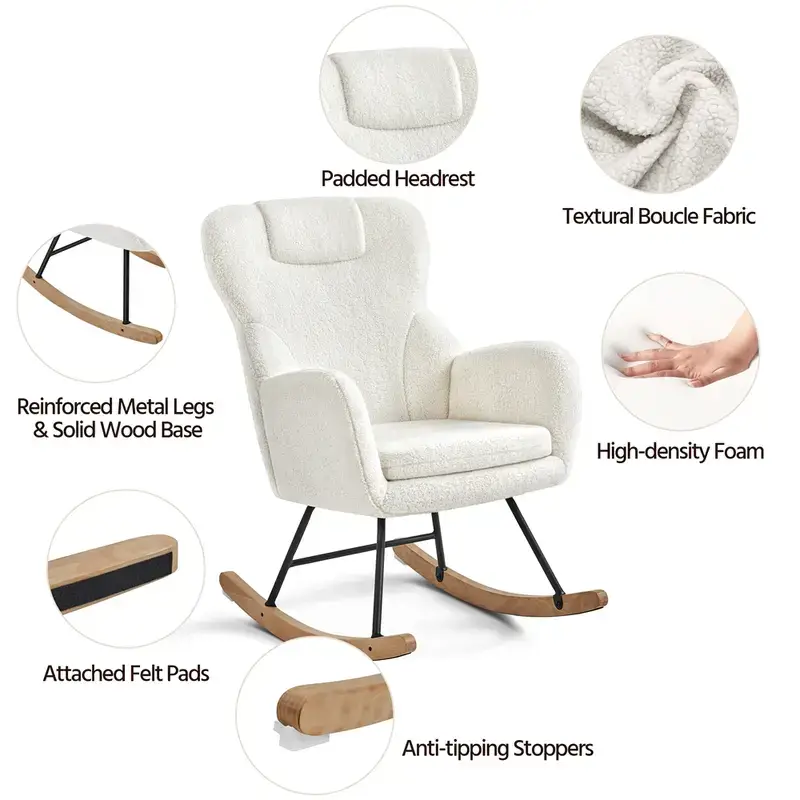 Rocking Accent Chair with Beech Wood Legs, Boucle Upholstered Armchair for Living Rooms, Bedrooms, Apartments