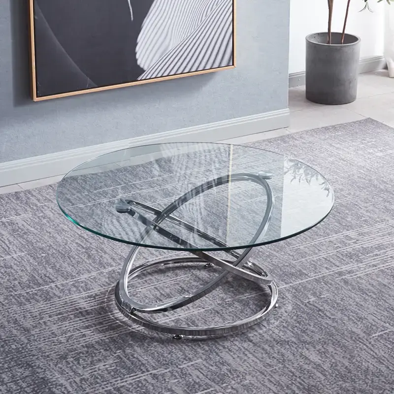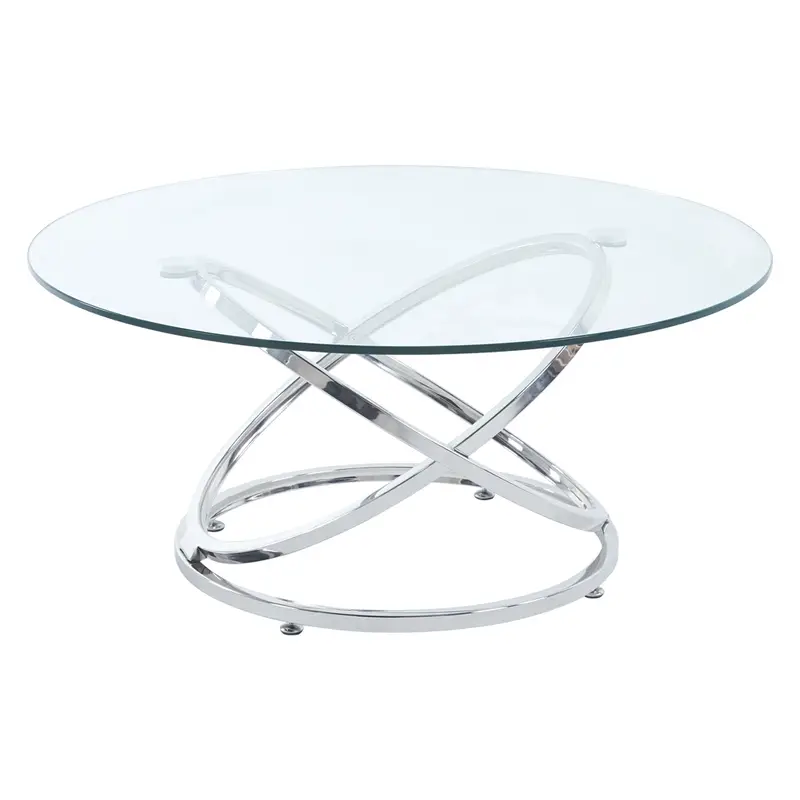 1 pc Large Round Clear Glass Coffee Table with Silver Metal Legs, Minimalist and Stylish Design, Perfect as a Tea Table, End Table, or Dining Table for Living Room, Cafe, Restaurant, or Balcony, 90x90x46cm, Space Saving, Contemporary Style, Built-to-Last Construction, Non-Marring Table Glides