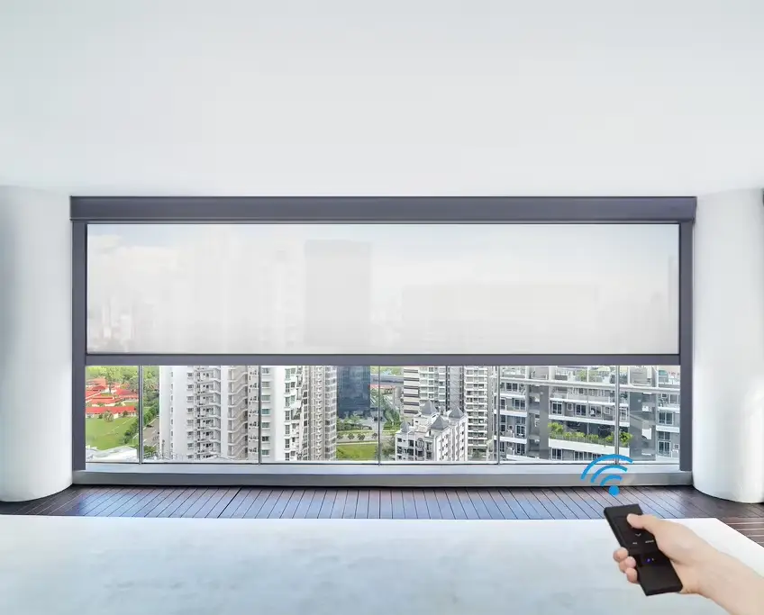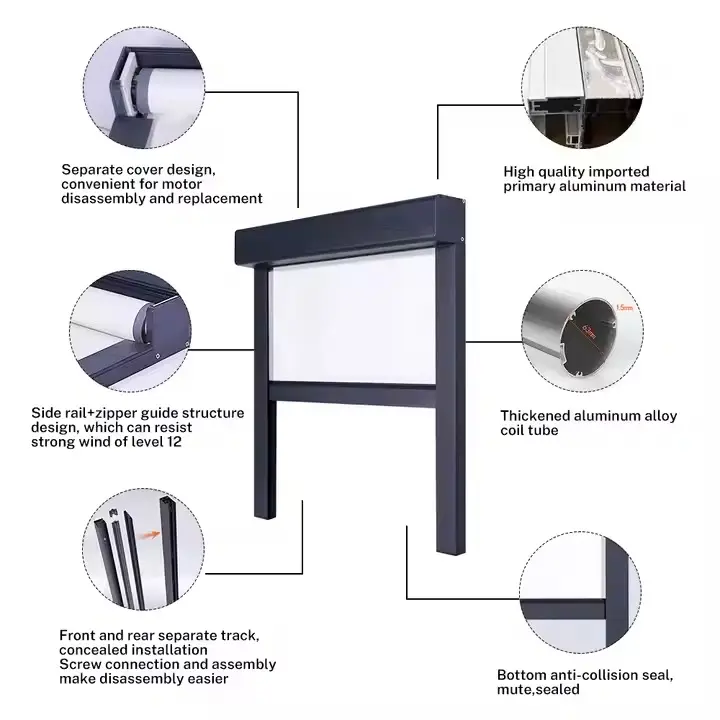 Outdoor Smart Control for Balcony Windproof Zip Track Outdoor Aluminum Patio Sun Shading Rolling Screen Shades Blinds