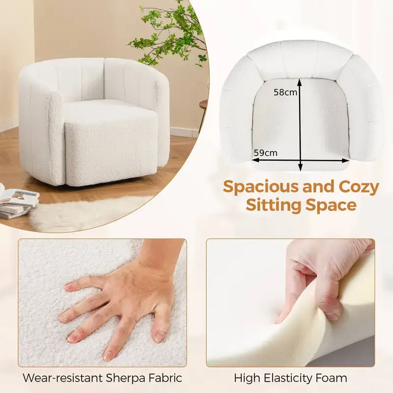 Upholstered Swivel Barrel Chair with Backrest and Armrests