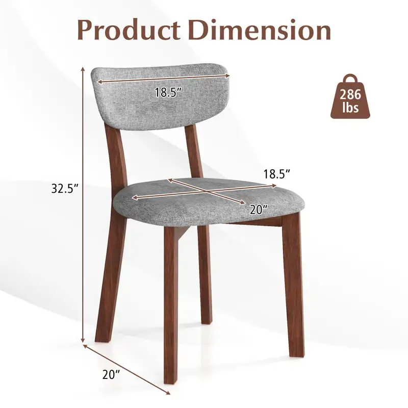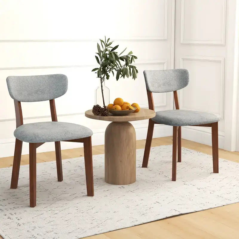 DORTALA Upholstered Dining Chair Set of 2, Armless with Cushioned Padded Seat & Back, Rubber Wood Frame, Ergonomic Curved Backrest, Stylish Modern Chair for Living Room, Kitchen, Bedroom