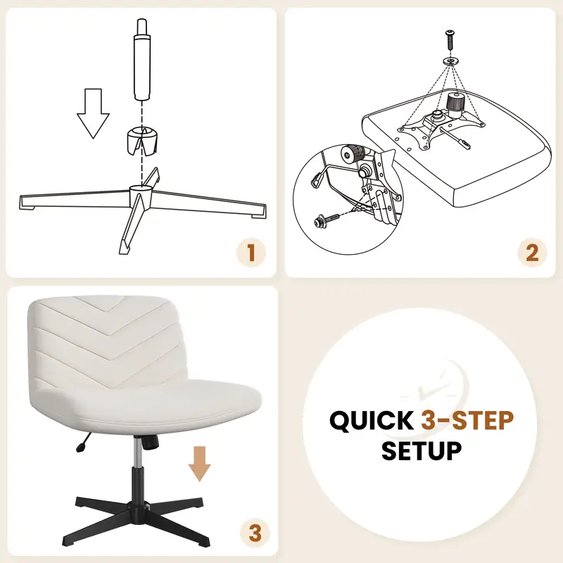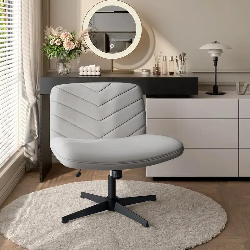 Vanity Chair Fabric 360° Swivel Desk Chair, Cross Legged Office Chair Makeup Chair for Home/Office/Study/Bedroom, Light Grey/Beige
