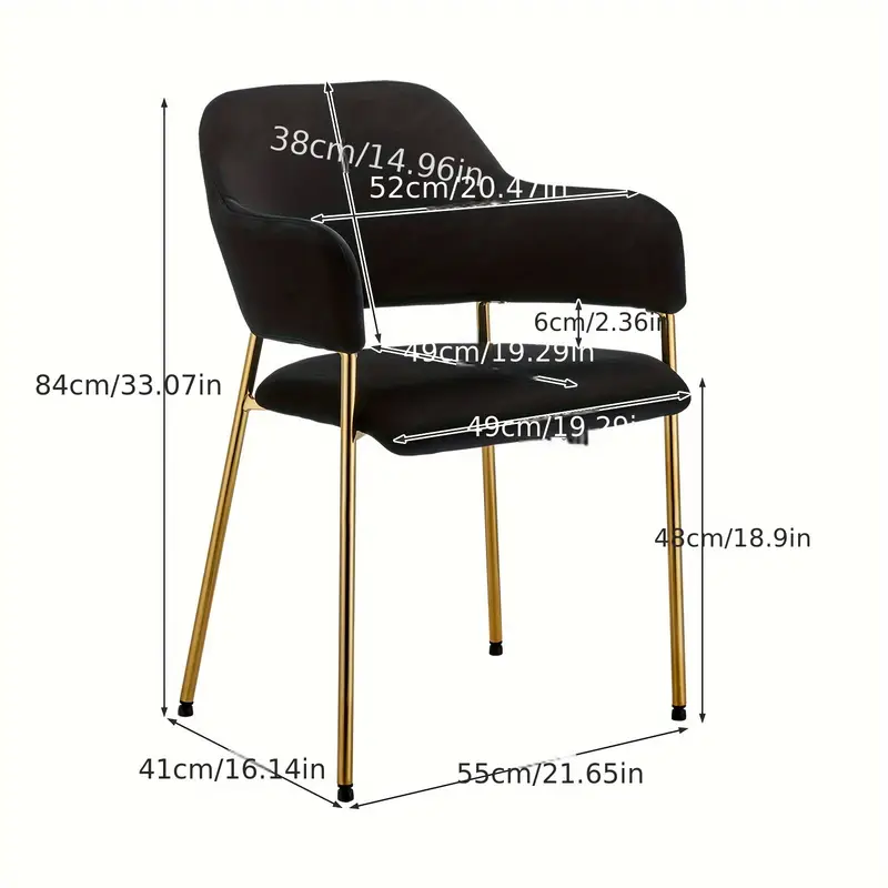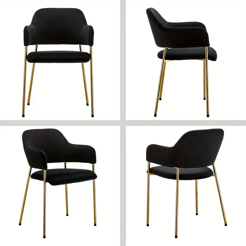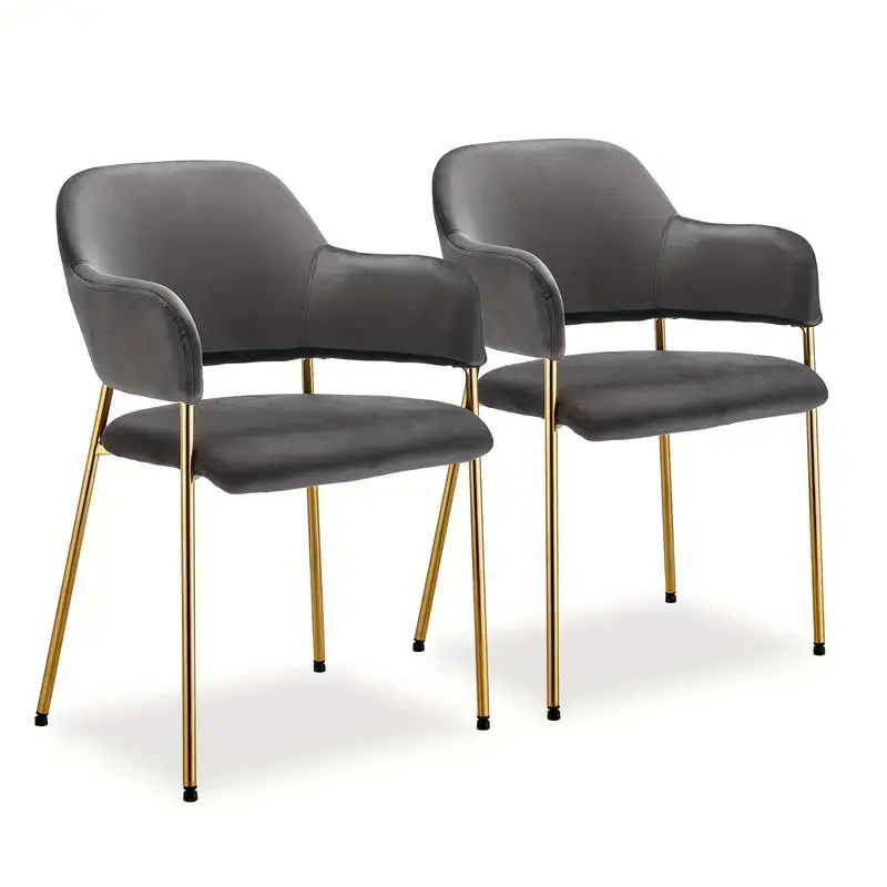Velvet Dining Chairs Set Of 2 Thick Padded Kitchen Reception Chairs with Armrest And Golden Metal Legs, Leisure Accent Chairs for Home Dining Room Living Room Bedroom